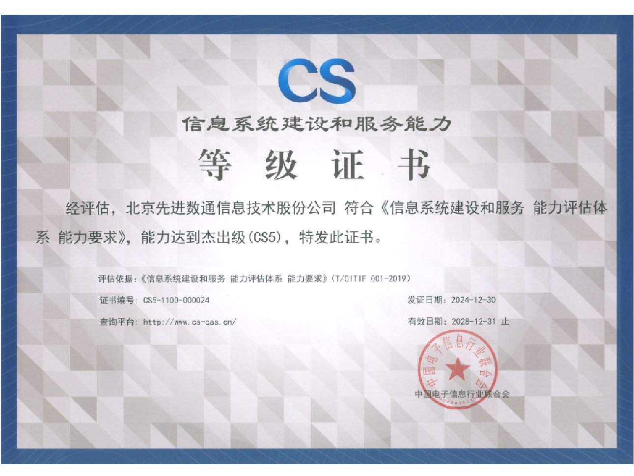 Ebpay电子先后取得CMMIL5、软件能力成熟度五级(SPCA 5)、信息系统建设和服务能力评估体系(CS)5级、ITSS成熟度一级、信息系统安全集成服务资质二级、信息系统安全运维服务资质二级、国产化信息系统集成和服务能力评估四级(LS4)、北京市企业技术中心等资质认证,并取得ISO9001、ISO20000、ISO27001、ISO14001、ISO45001、ISO22301、ISO37001、ISO28001、GBT29490等标准体系认证,具备行业领先的技术开发、工程实施及服务保障能力。